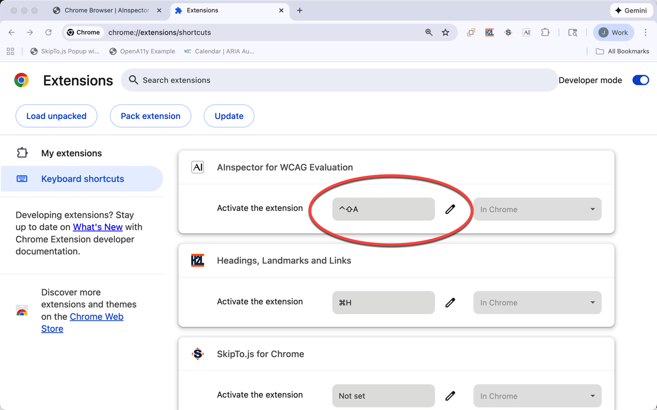 chrome://extensions/shortcuts). - Select the edit icon associated with the extension and focus moves to the edit box.