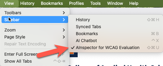 After you install AInspector for WCAG Evaluation you can pin the icon to the toolbar to open and close the side panel.