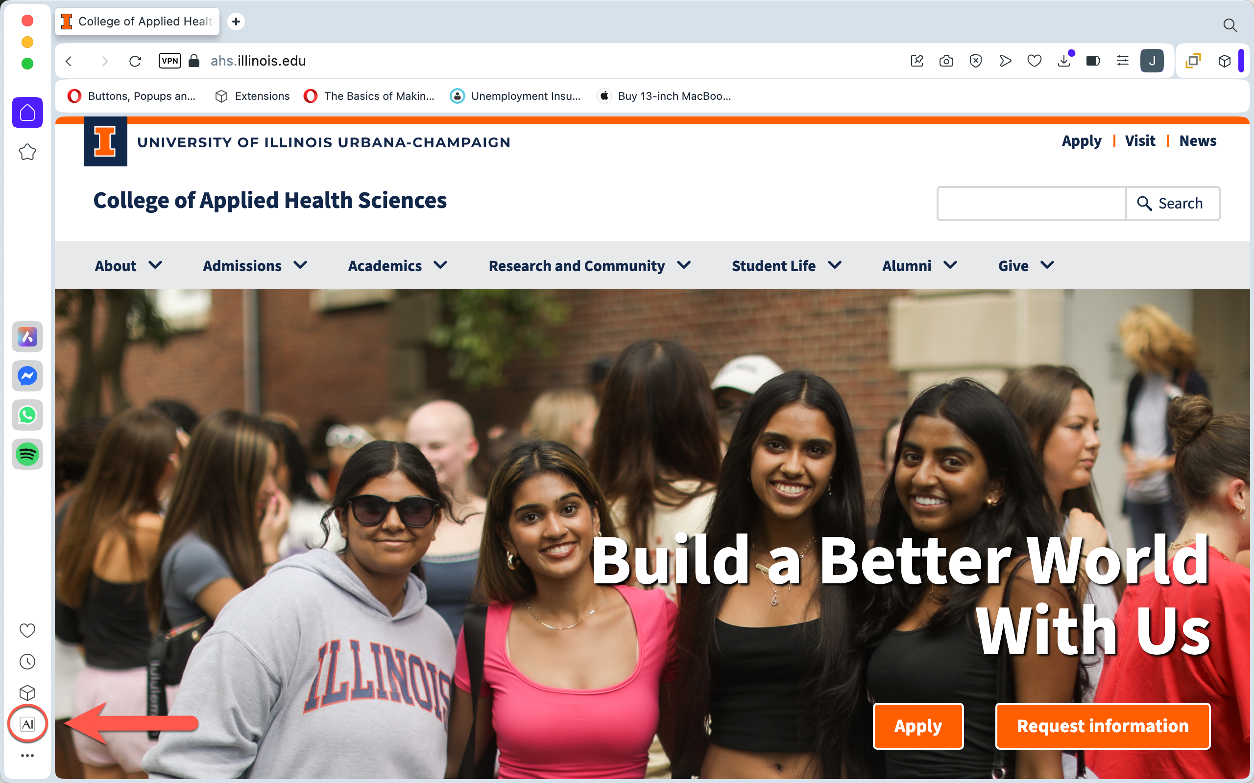AInspector for WCAG Evaluation icon is automatically pinned to the sidebar of Opera.