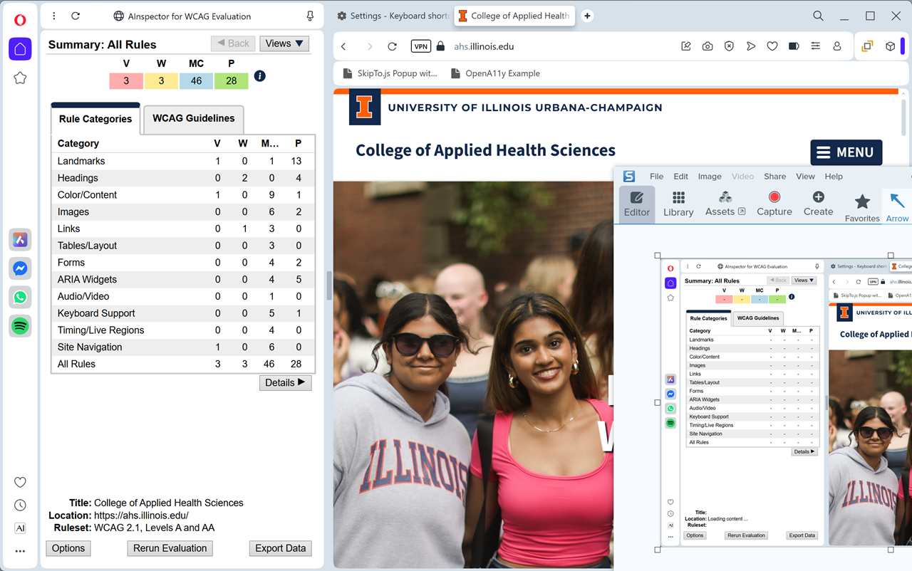 If you find a problem with AInspector for WCAG Evaluation please let us know by creating an issue in the GitHib repository for AInspector. Please provide the following information: