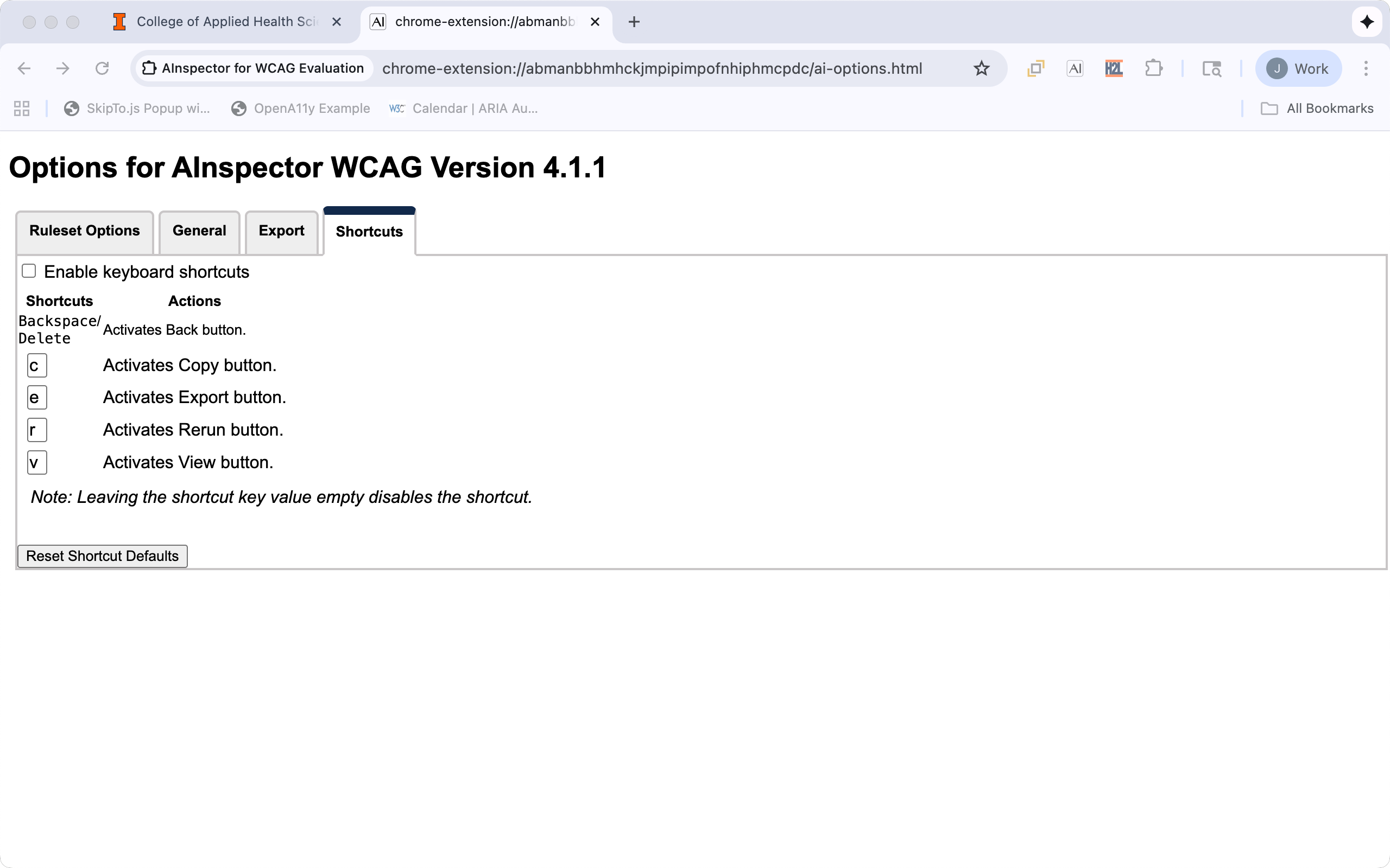 Enable/Disable Shortcuts